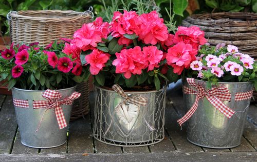 Zinken potten blijven als basis altijd goed. In de loop der jaren is het assortiment uitgebreid tot prachtige spiegels toe, al dan niet bewerkt. Leuke mandjes met prints van margrieten of tulpen, gieters en emmers in allerlei maten, de kleur van het zink gaat met de trend mee. We hebben de grijslook gehad, het grijszwarte zink, de "old" look en zelfs koperkleurig. Zink is een materiaal met een lange levensduur en past in elke tuin of balkon.